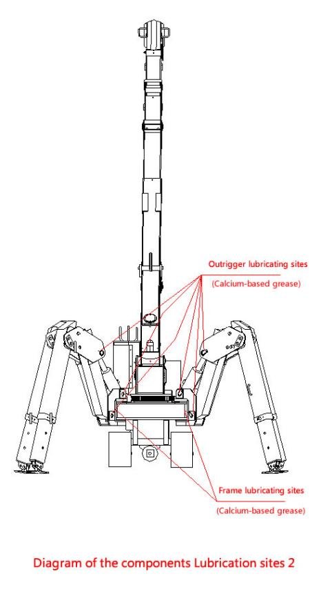 5. Lubricate the various parts of the crane : Apply grease in strict accordance with the 《Schematic Diagram of Lubrication Points (1-3)》