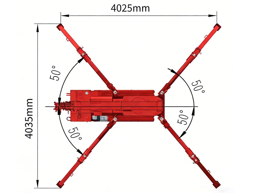 | Vehicle Weight: 5,291 lbs (2,400 kg) | Max. Outrigger Footprint: 13' 1" × 13' 1"(4000 × 4000 mm) |