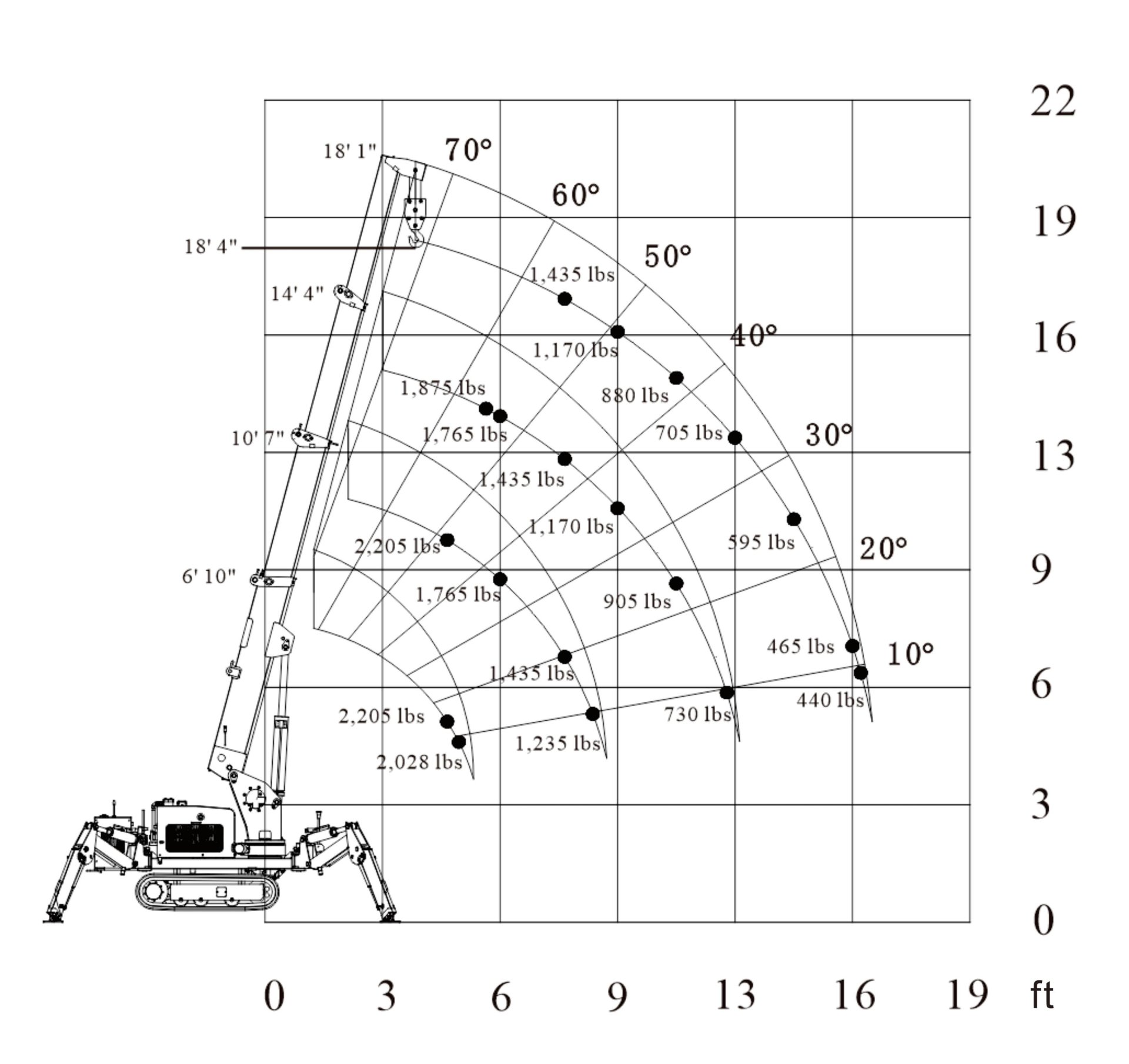 | Max Working Radius: 16' 6" | Max Lifting Height (OG): 18' 4" |