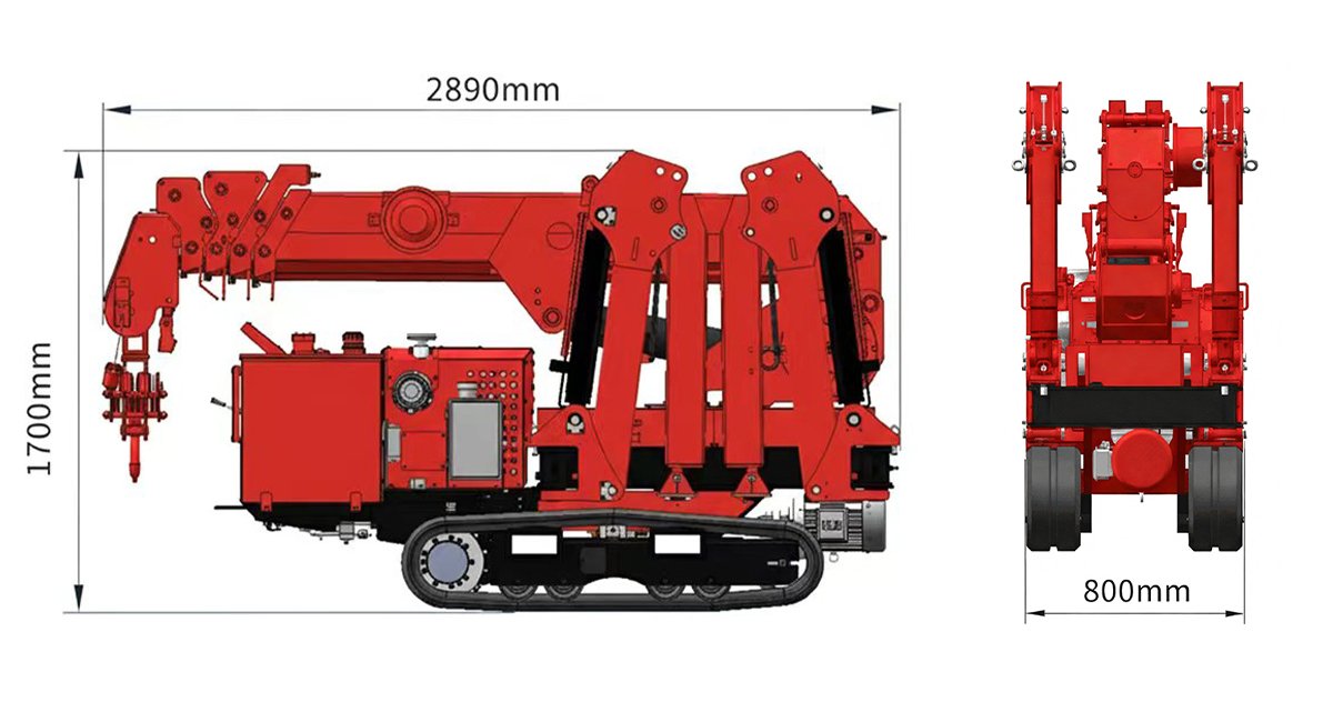 | Max. working radius: 27' 1" @ 330 lbs (8.25m @ 0.15t) | Dimensions (L×W×H): 9' 6" × 31.5" × 5' 7"(2890 × 800 × 1700 mm) |