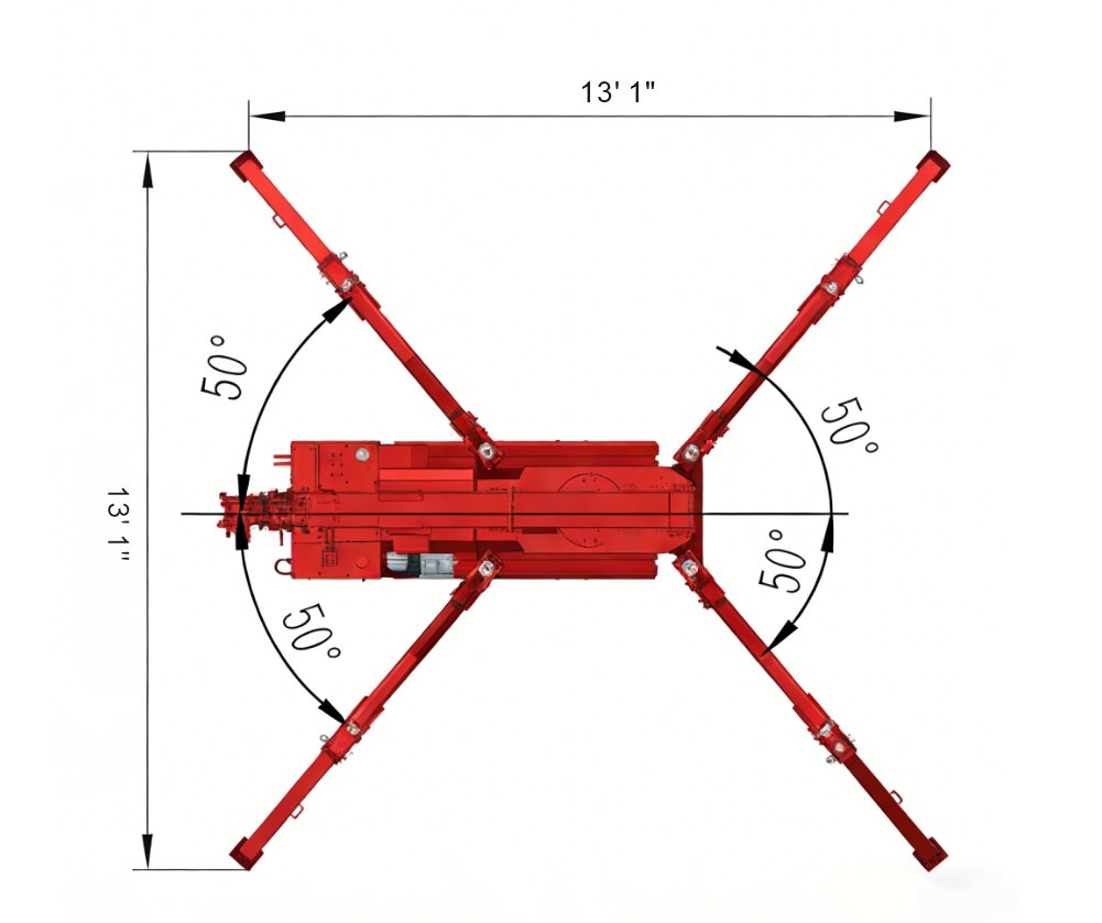 | Vehicle Weight: 5,070 lbs | Max. Outrigger Footprint: 13' 1" × 13' 1" |