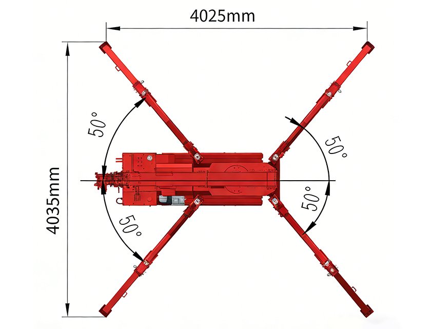 | Vehicle weight: 4,938 lbs (2,240 kg) | Max. outrigger footprint: 13' 1" × 13' 1"(4000 × 4000 mm) |